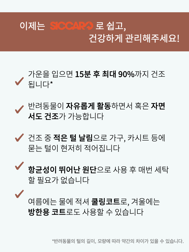 15분 만에 최대 90% 젖은 털을 건조
